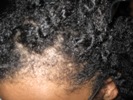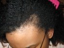 | So it is week 9 and I have three weeks left for this mini-experiment. My hair is not as full in that area as last week, but there is still hair. This is so confusing. I thought I would see a pretty consistent type of growth, but this is any thing but consistent. | The area is growing slowly and steadily. I feel that a big help has been braiding or twisting that area as to leave it alone after applying the emu oil. This week I had my hair in a cornrow style; I applied the emu oil in and around the cue ball spot yet cornrows and braids prevent you from constantly touching your hair because you will disrupt the style, which is good. |
